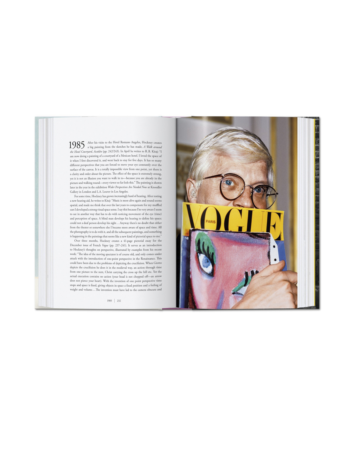 Published to mark Taschen’s 40th anniversary, this special edition is an unprecedented year by year journey through the life and work of David Hockney. From the London of the Swinging Sixties, via Californian swimming pools, to the expansive landscapes of his native Yorkshire, the book’s juxtaposition of artworks and biographical text makes us discover how Hockney undertakes his artistic research and where he finds inspiration for his multifaceted work.