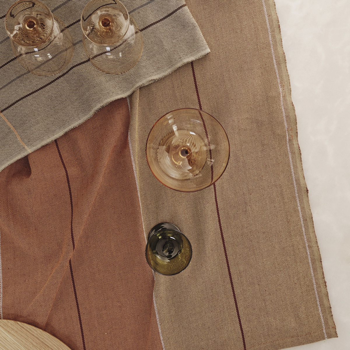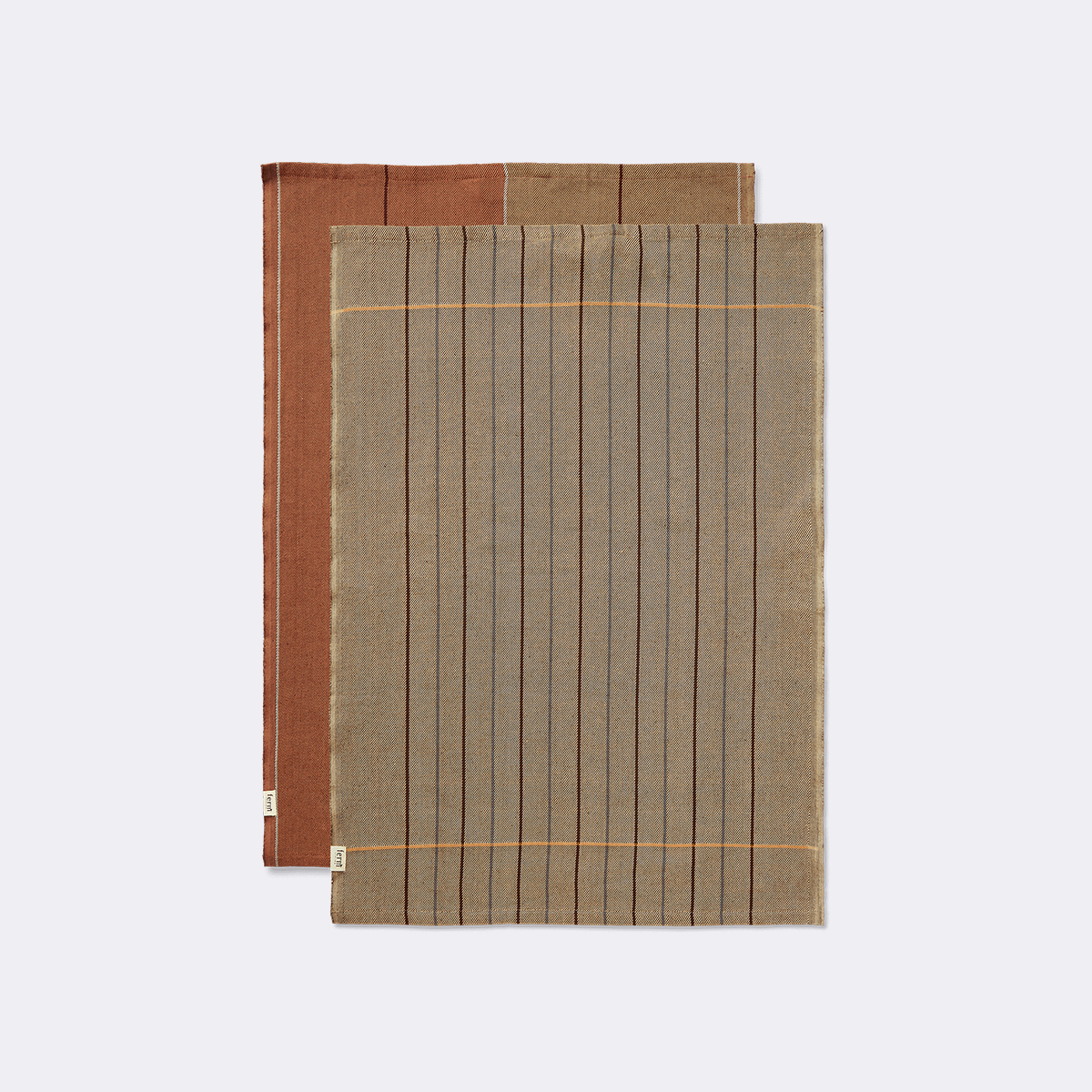 The Ito Family presents a contemporary interpretation of traditional kitchen textiles. Fashioned from GOTS-certified organic cotton, the Ito Tea Towels are designed for practicality and durability in the kitchen. These towels combine the strength and texture of twill weave with a delicate stripe design. Sold in a set of two, each towel is finished with a finely woven selvedge edge for a crafted yet elevated look.