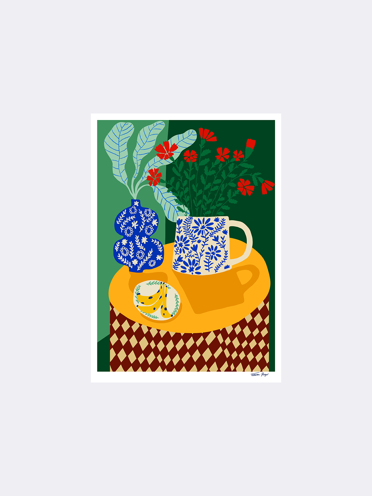 Teresa Rego explores and crosses artistic movements such as Cubism, Matisse's Lyrical Abstractionism, and the “Memphis” group, in representations inspired by natural geometry and the fusion between abstract forms and forms present in nature.