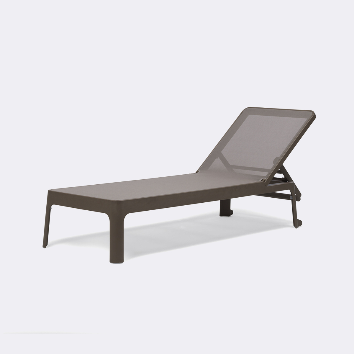 A sun lounger featuring clean, harmonious lines matched with a wide, comfortable surface area. The backrest has 4-position adjustment until completely flat.