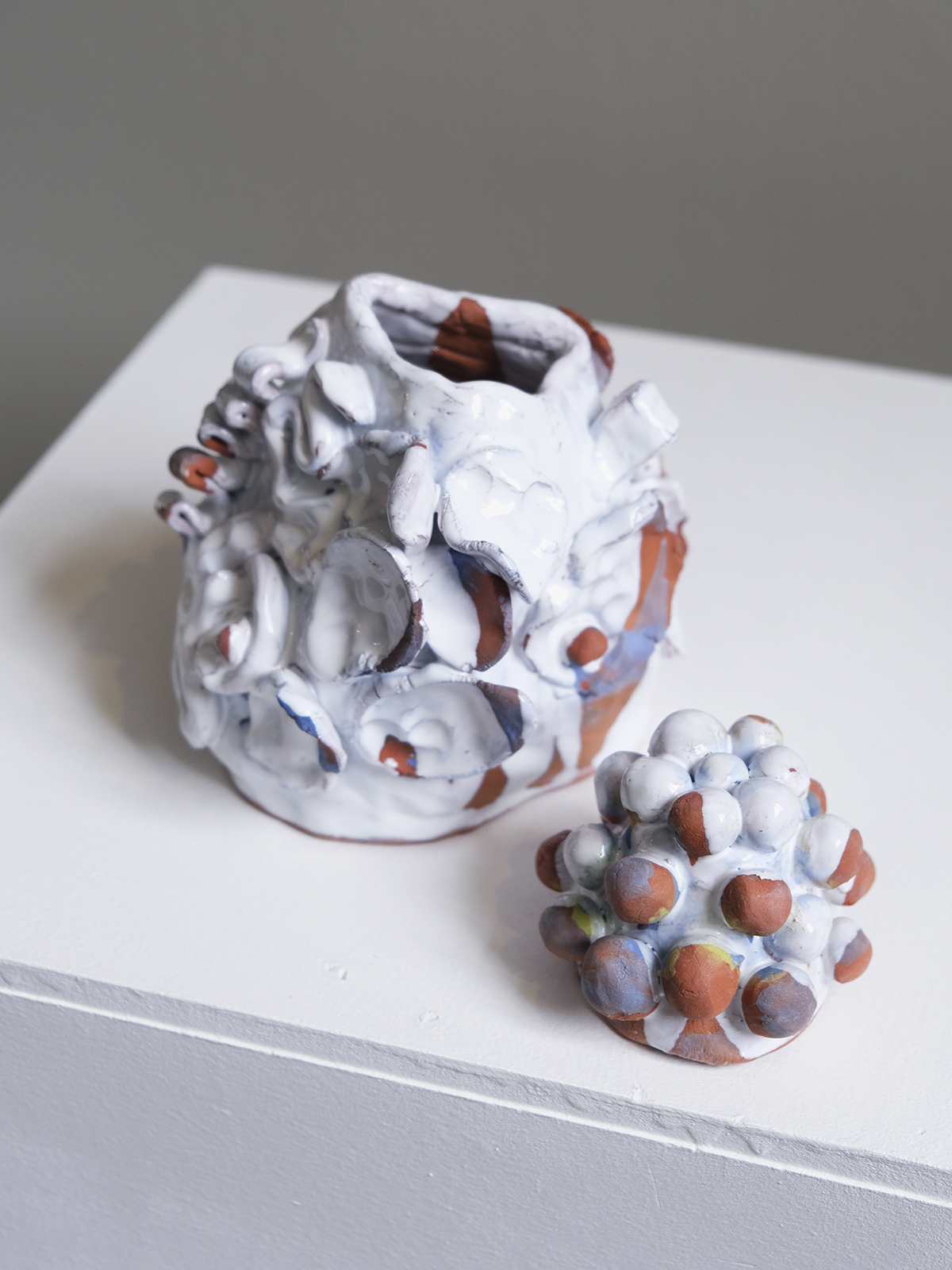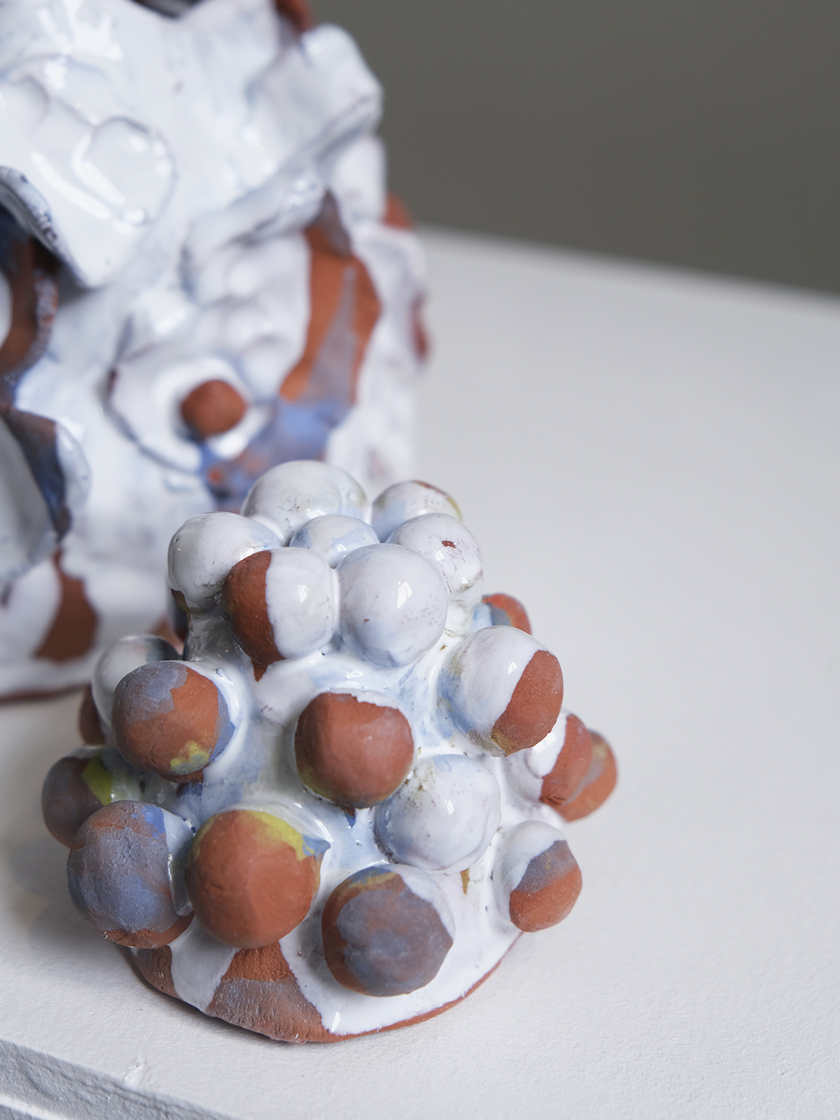 Em “Gestos e Volumes”, Eva apresenta o trabalho em cerâmica pela experimentação direta com o barro. Cada peça resulta de um processo instintivo, sem desenho prévio, onde o gesto das mãos define a forma e a textura. O resultado são volumes singulares, de pequena e média escala, que revelam a exploração da matéria em estado puro. “Gestos e Volumes” reúne um conjunto de peças escultóricas que evidenciam a abordagem contemporânea da artista à cerâmica, centrada na autenticidade e na singularidade de cada objeto.