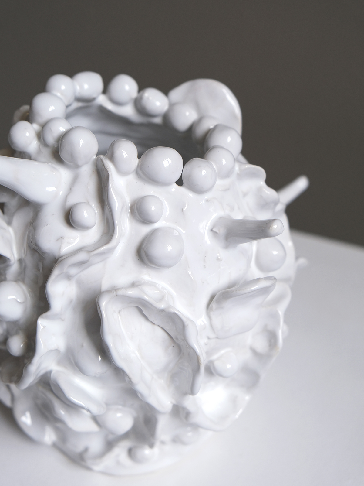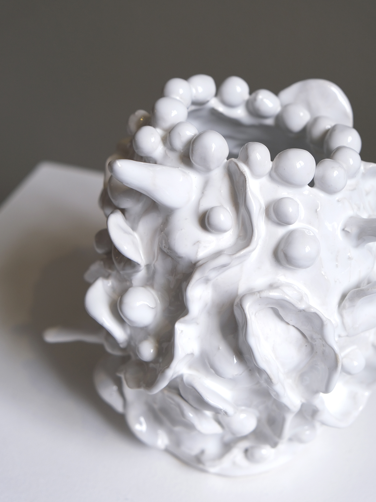 Em “Gestos e Volumes”, Eva apresenta o trabalho em cerâmica pela experimentação direta com o barro. Cada peça resulta de um processo instintivo, sem desenho prévio, onde o gesto das mãos define a forma e a textura. O resultado são volumes singulares, de pequena e média escala, que revelam a exploração da matéria em estado puro. “Gestos e Volumes” reúne um conjunto de peças escultóricas que evidenciam a abordagem contemporânea da artista à cerâmica, centrada na autenticidade e na singularidade de cada objeto.