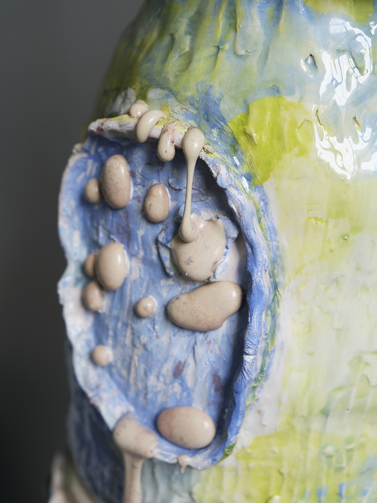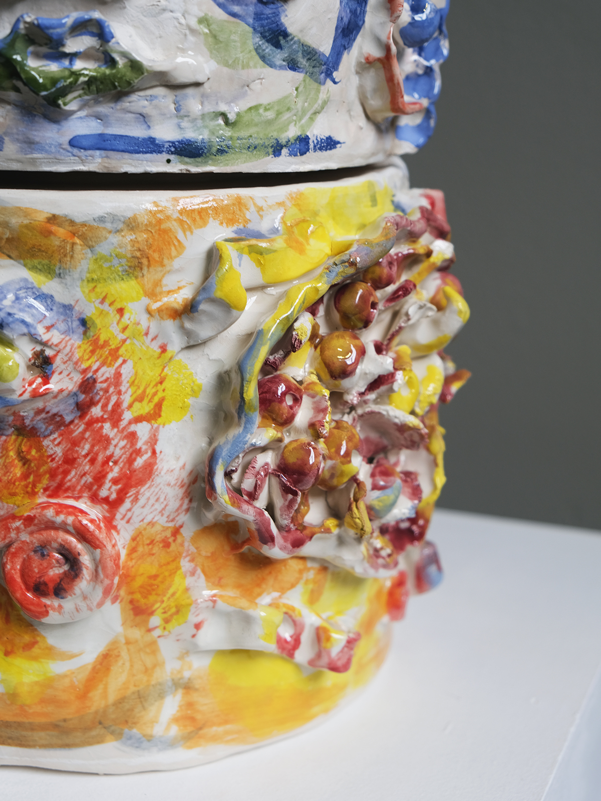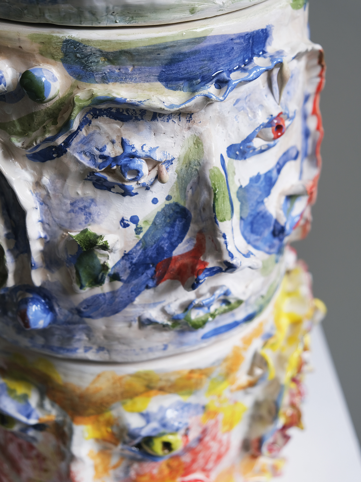 Em “Gestos e Volumes”, Eva apresenta o trabalho em cerâmica pela experimentação direta com o barro. Cada peça resulta de um processo instintivo, sem desenho prévio, onde o gesto das mãos define a forma e a textura. O resultado são volumes singulares, de pequena e média escala, que revelam a exploração da matéria em estado puro. “Gestos e Volumes” reúne um conjunto de peças escultóricas que evidenciam a abordagem contemporânea da artista à cerâmica, centrada na autenticidade e na singularidade de cada objeto.