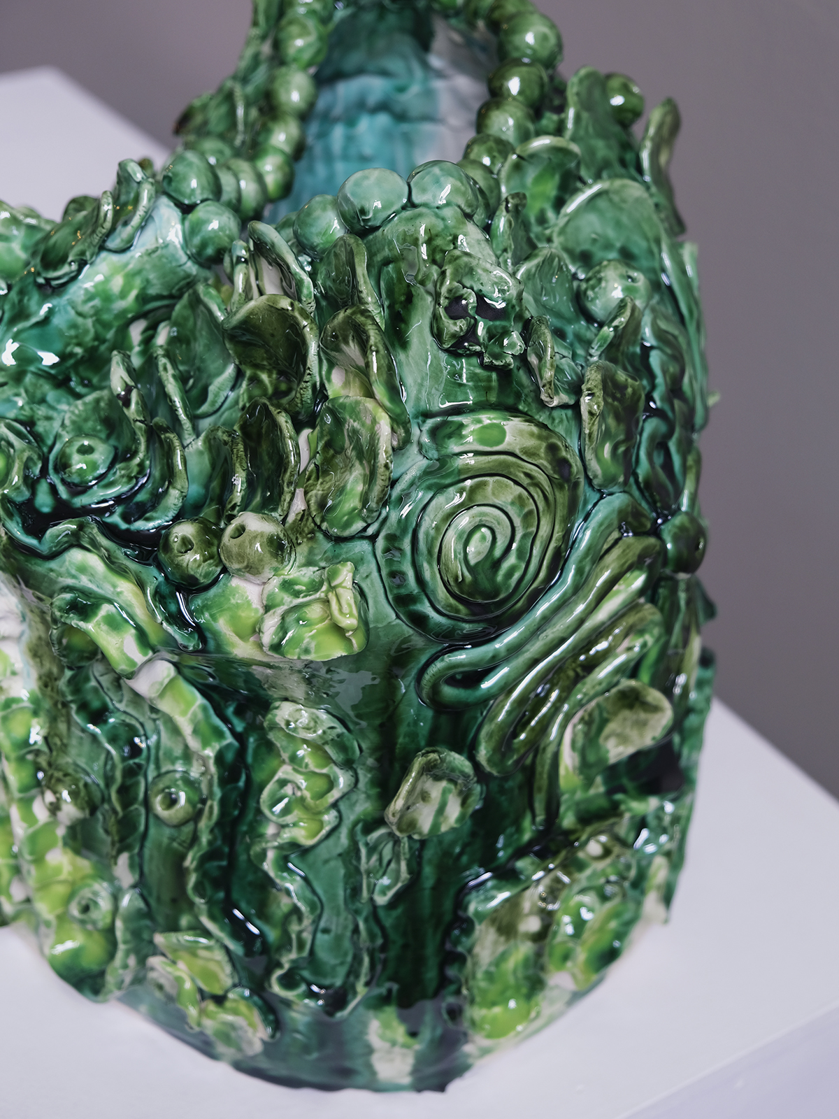 Em “Gestos e Volumes”, Eva apresenta o trabalho em cerâmica pela experimentação direta com o barro. Cada peça resulta de um processo instintivo, sem desenho prévio, onde o gesto das mãos define a forma e a textura. O resultado são volumes singulares, de pequena e média escala, que revelam a exploração da matéria em estado puro. “Gestos e Volumes” reúne um conjunto de peças escultóricas que evidenciam a abordagem contemporânea da artista à cerâmica, centrada na autenticidade e na singularidade de cada objeto.