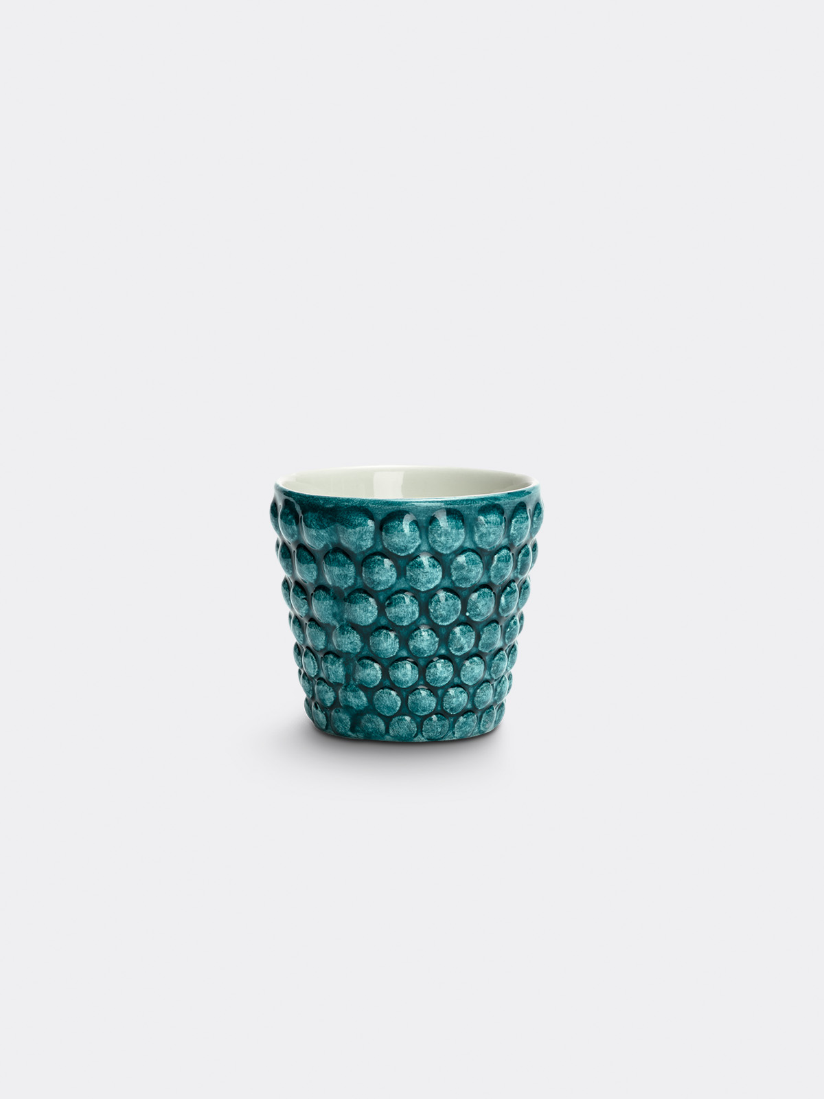 A charmosa coleção Bubbles está disponível em 14 cores diferentes, ideais para misturar e combinar entre si. O design icônico da coleção é inspirado no tradicional padrão de bolinhas e tem uma expressão lúdica e moderna cheia de energia. Todos os produtos são feitos à mão e pintados à mão em Portugal, o que confere um charme único a cada peça.