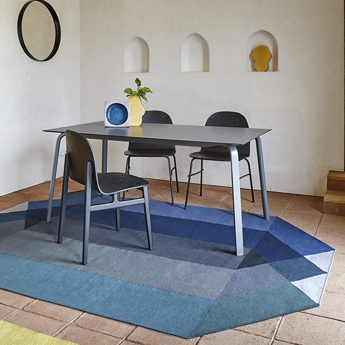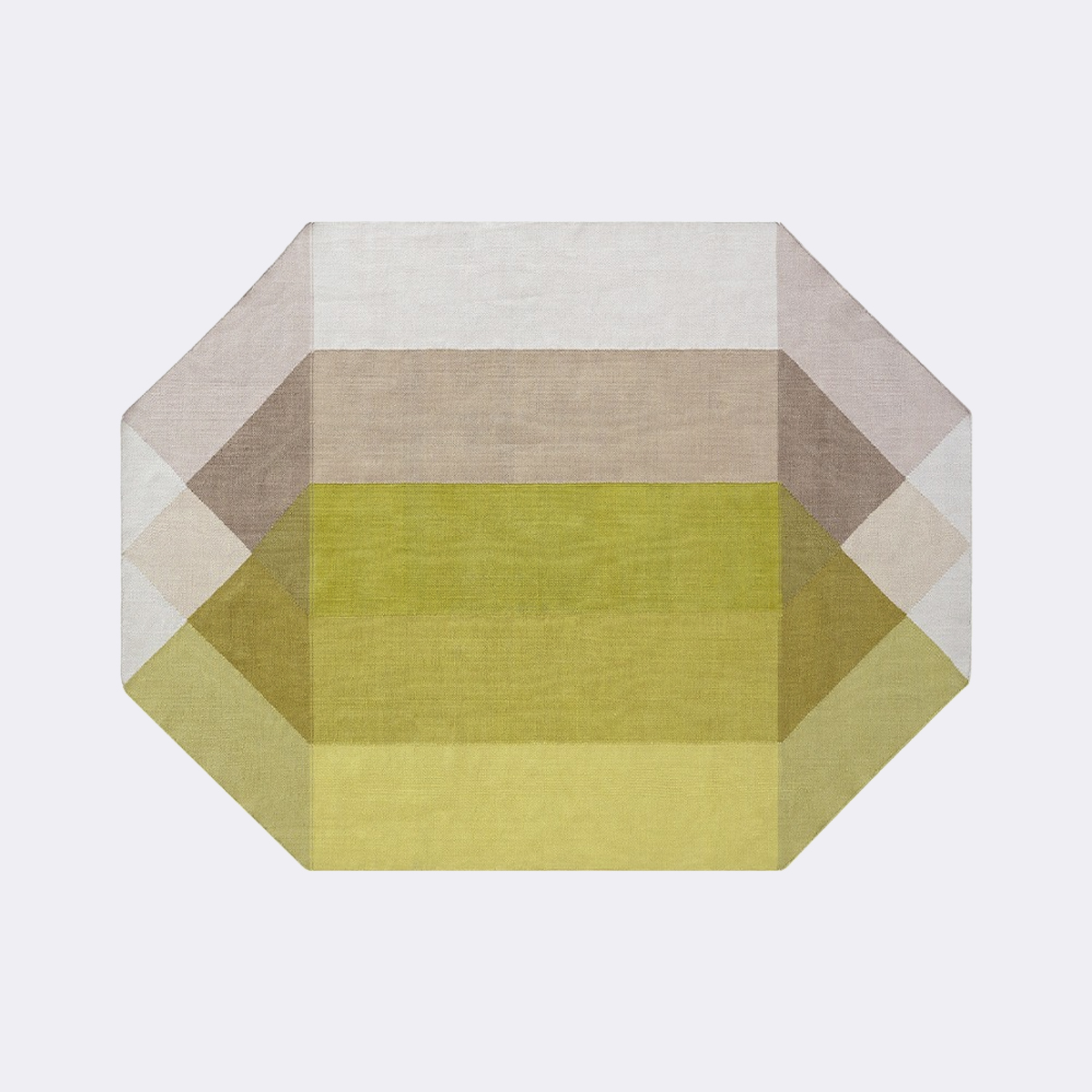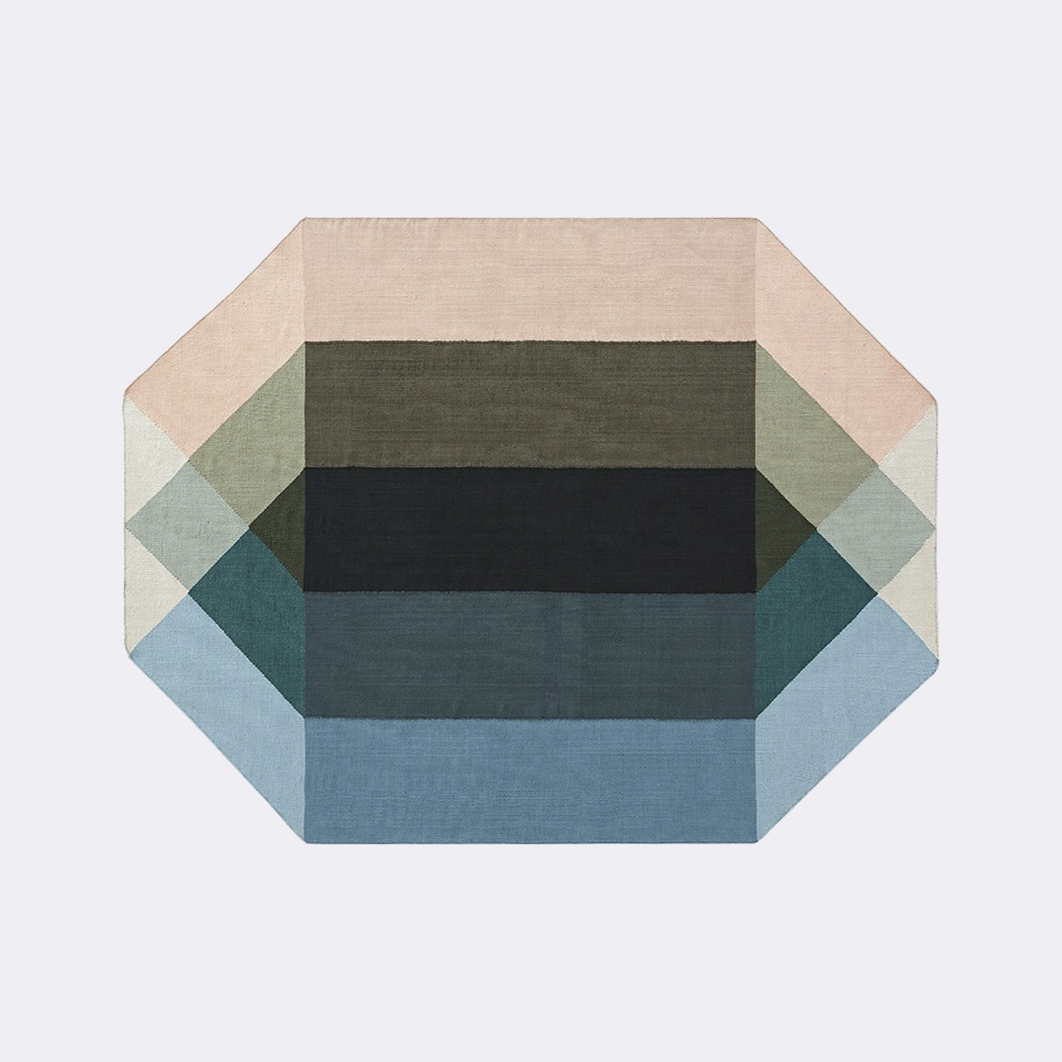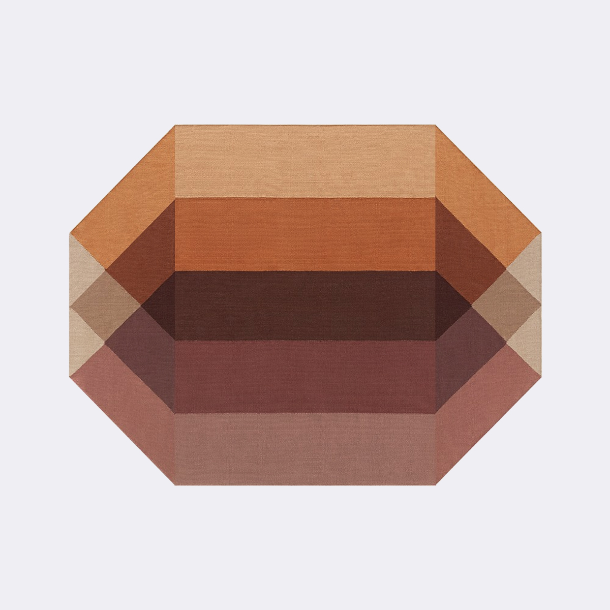 Com um formato octogonal invulgar, o padrão de figuras geométricas é inspirado nas faces facetadas de um diamante, imitando os seus diferentes graus de opacidade e transparência. Os fios PET reciclados podem ser manipulados nos mesmos teares manuais utilizados na produção de outros tapetes kilim, resultando numa peça muito leve e flexível. O kilim Diamond está disponível em três tamanhos, e em cinco tons.