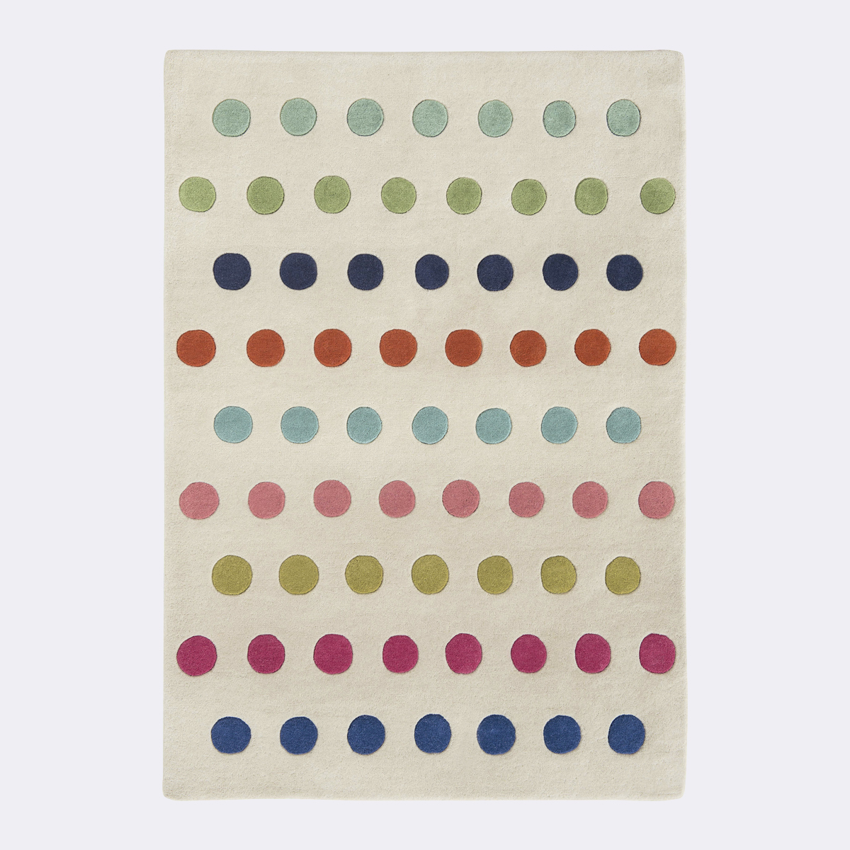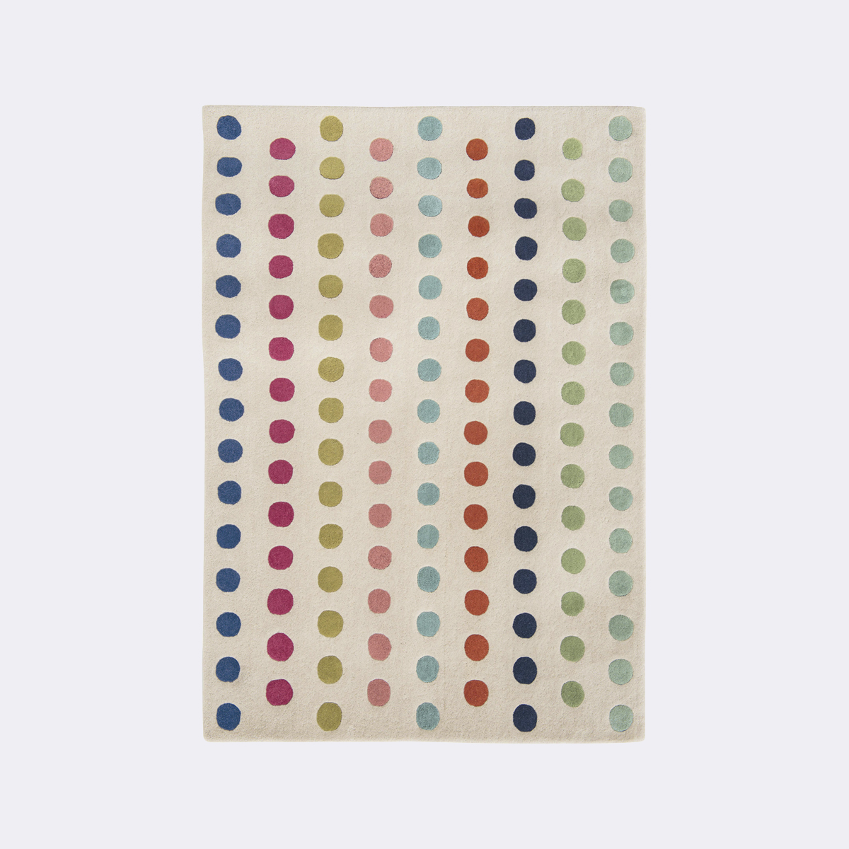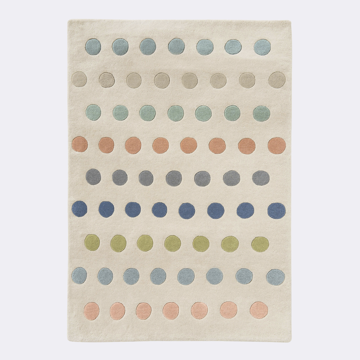 Um tapete tufado à mão divertido e simplesmente deslumbrante, que se coordena na perfeição com os tecidos e revestimentos de parede mais coloridos. O tapete Dotty tem um toque contemporâneo, em tons modernos, e com um pêlo de lã sumptuoso.
