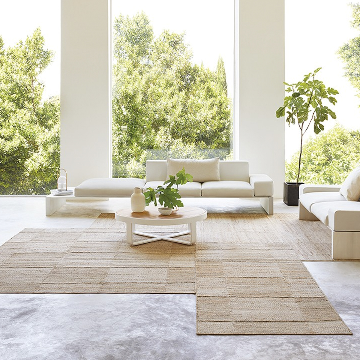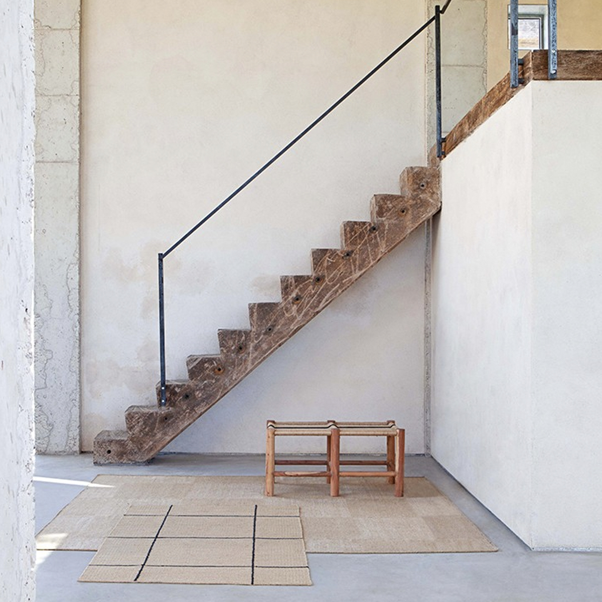Os tapetes da coleção Roots dão um toque especial aos clássicos tapetes de juta de produção tradicional. Desenhados por Inma Bermúdez, cada um joga à sua maneira com a forma do quadrado, as texturas e as várias tonalidades oferecidas por esta fibra natural, gerando diferentes desenhos. Este modelo combina dois tipos de execução, uma linear e outra em espinha de peixe, que são as que produzem o subtil padrão. Uma peça com carácter natural e rústico, que, reformulada sob os códigos de design actuais, é perfeita para um espaço contemporâneo.