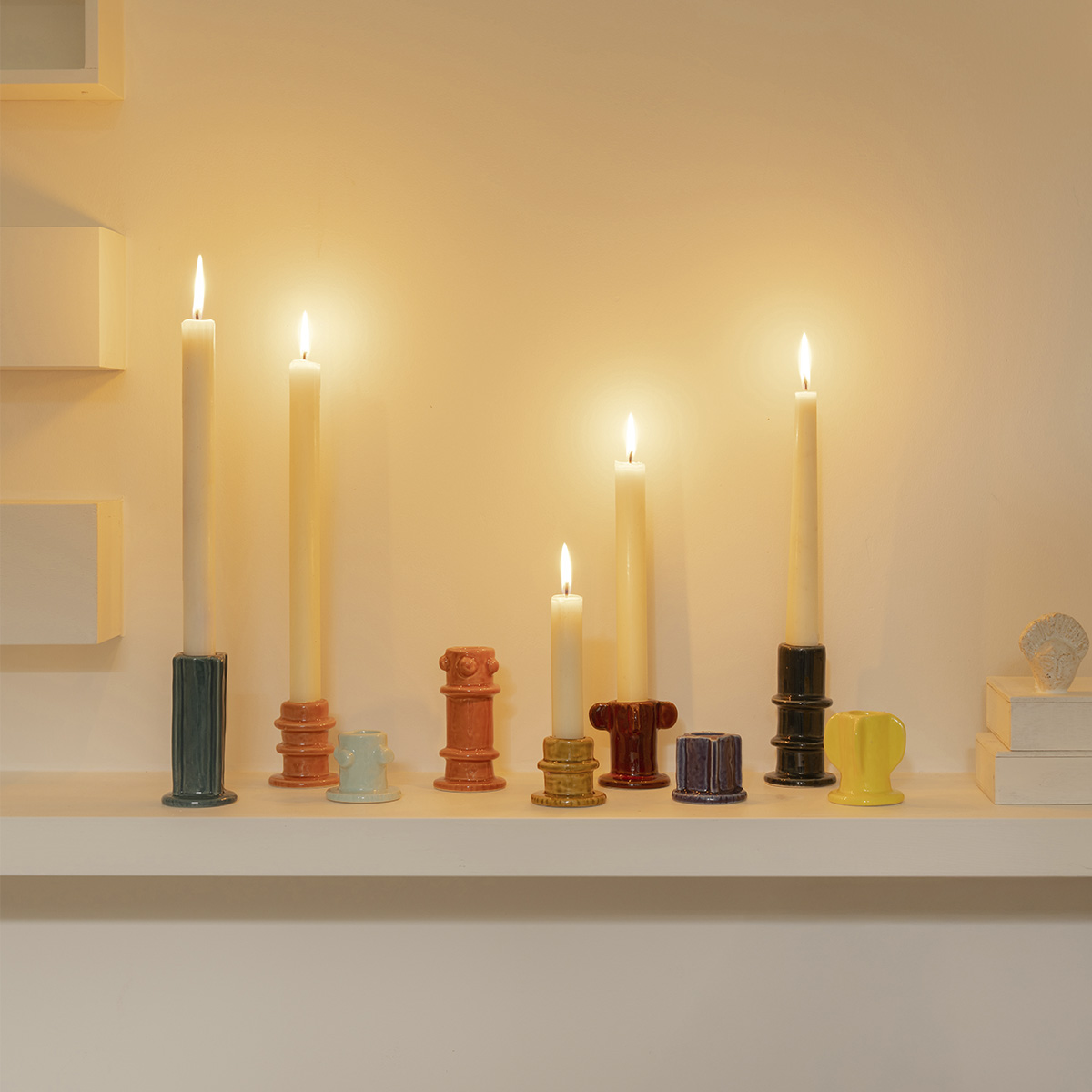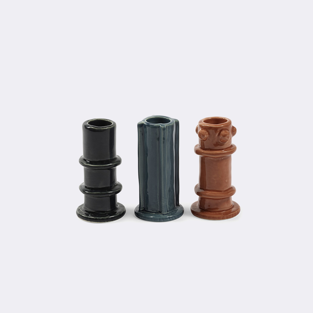 Um conjunto divertido de castiçais em cerâmica da coleção Molly, desenhado por Marie Michielssen. Cada peça apresenta uma forma distinta e um acabamento esmaltado colorido. Juntos, formam um trio vibrante de castiçais que conferem personalidade e criatividade a qualquer interior.