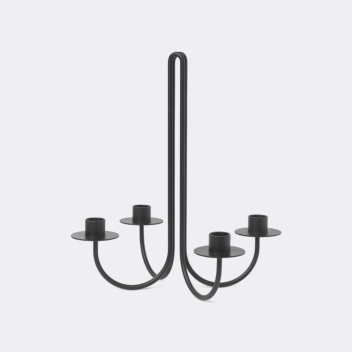 Dando um toque festivo a qualquer ocasião, o castiçal Sway é um castiçal de quatro braços feito de aço com revestimento em pó. Inspirado nas peças de ferro forjado do movimento Arts and Crafts, o castiçal une o passado e o presente com a sua interpretação moderna de uma antiguidade clássica.