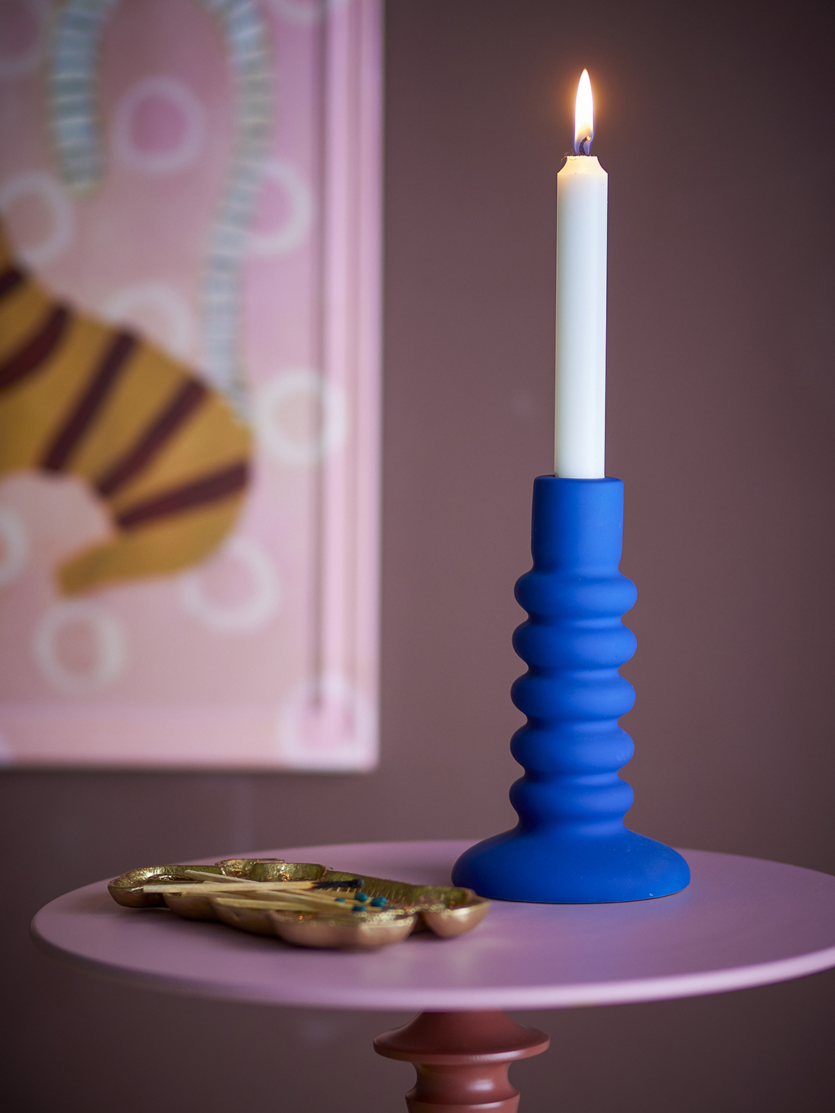 O castiçal Thorne é produzido em grés com um esmalte azul escuro mate. A sua forma curva confere-lhe um toque gráfico e cria um belo contraste no interior. Fica bonito por si só ou em combinação com outros castiçais numa prateleira, numa bandeja ou no parapeito de uma janela.
