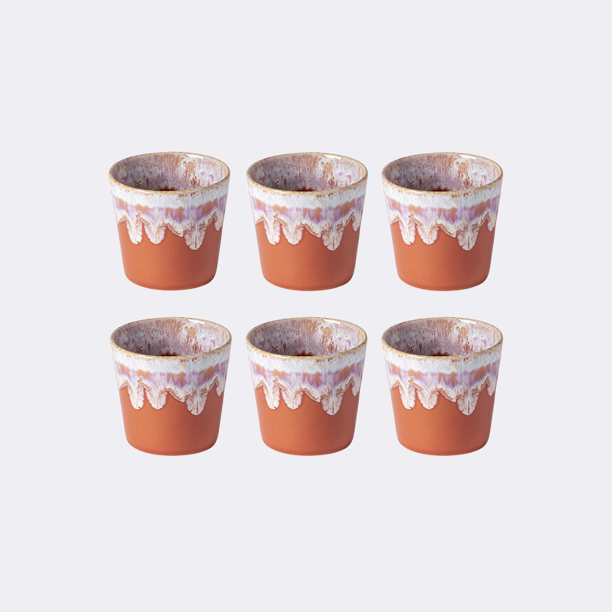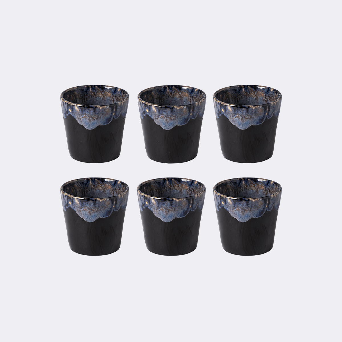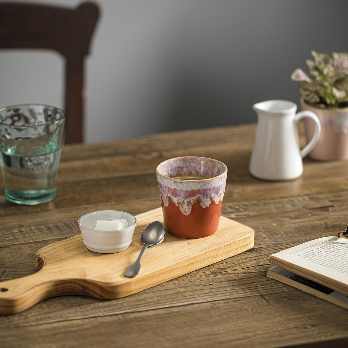 As suas formas orgânicas convidam à elevação dos sentidos para um ritual de degustação memorável. Dos tons suaves de um rosa pálido à sofisticação do azul escuro, os vidrados reativos disponíveis na coleção combinam-se entre si numa explosão de cor que desperta energia e beleza ao seu ritual diário de beber café.