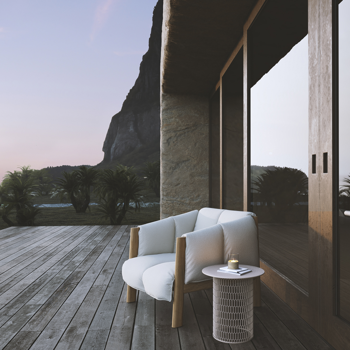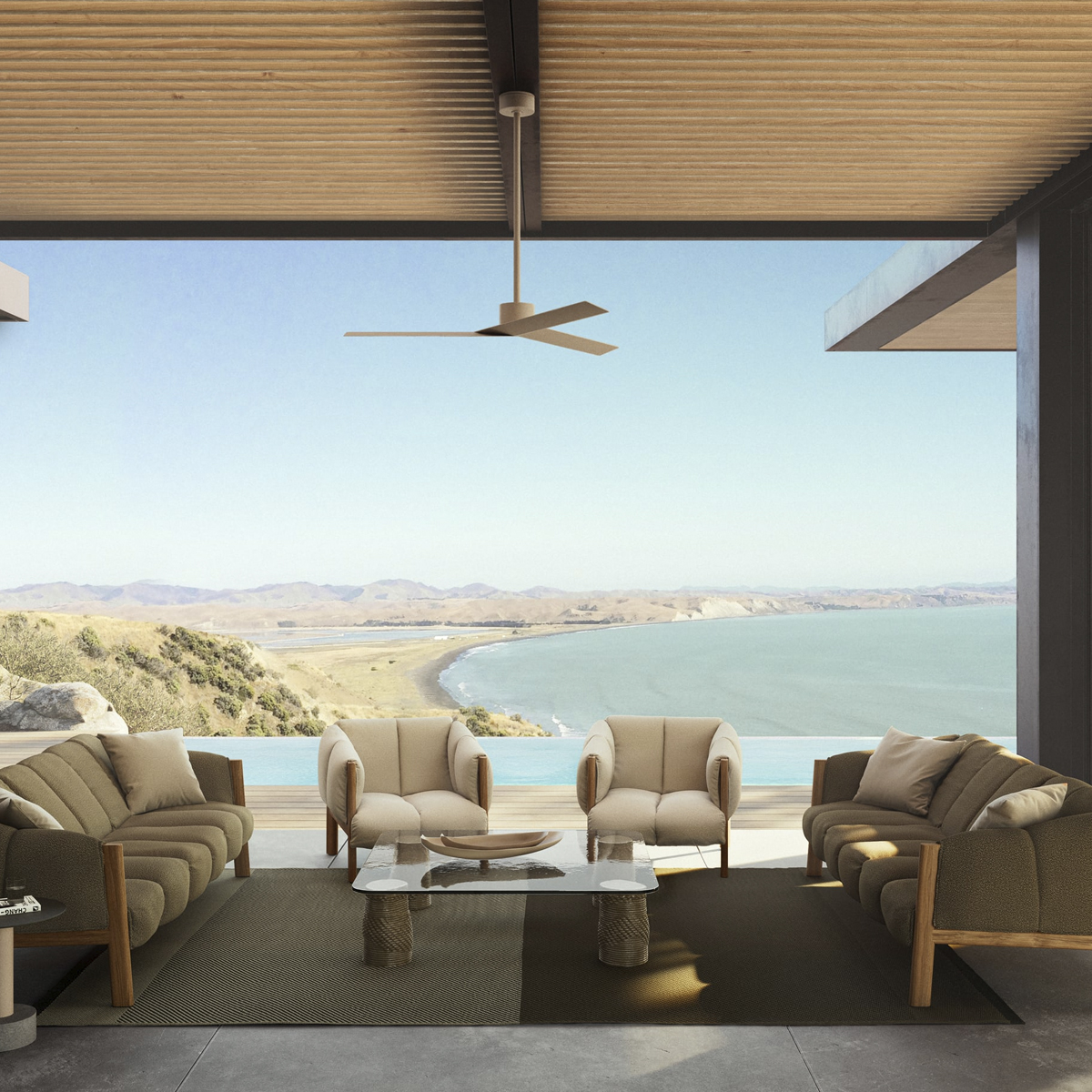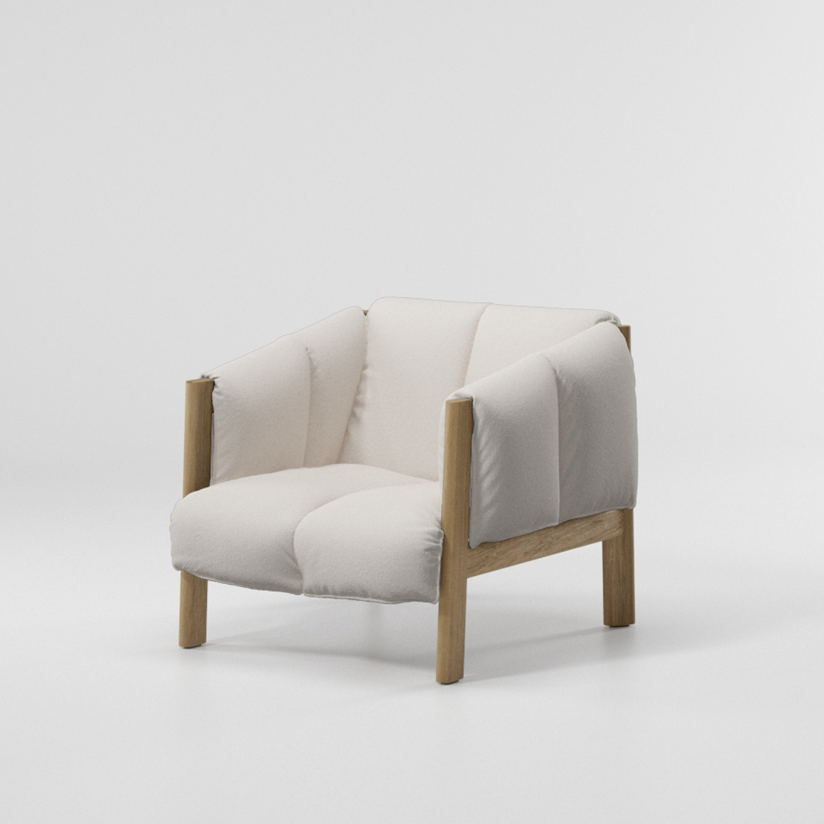 Plumon baseia-se no conceito de vestir e despir móveis. A designer Patricia Urquiola desenha uma estrutura leve, na qual um vestido almofadado é produzido à medida e é envolvido na sua estrutura. Este acolchoado, caracterizado por curvas e costuras, proporciona puro conforto. É o ajuste que orienta a estética. Com alguns gestos simples, o vestido é colocado sobre a estrutura rígida de teca e envolve-a. Uma extrema facilidade de utilização que se torna uma verdadeira mais-valia para o exterior.