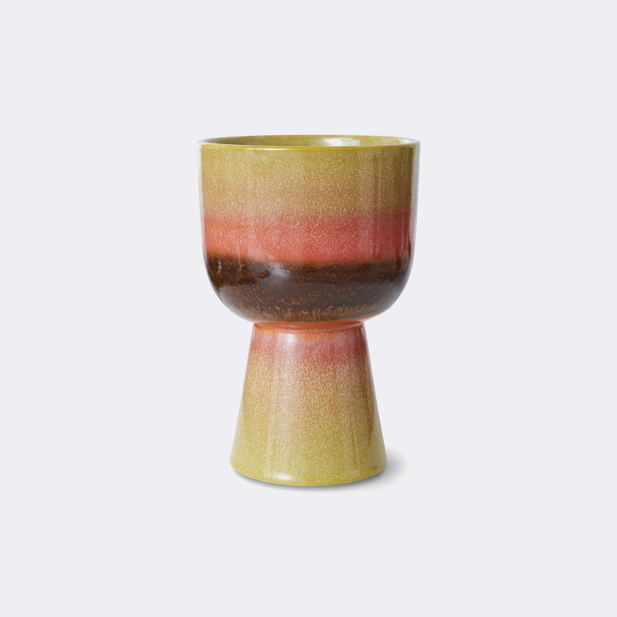 Este vaso de flores produzido à mão será um complemento colorido para o parapeito da sua janela, armário ou mesa de apoio. O esmalte reativo brilhante confere profundidade ao vaso e realça as cores — agora só tem de escolher a sua planta favorita para dar o toque final.