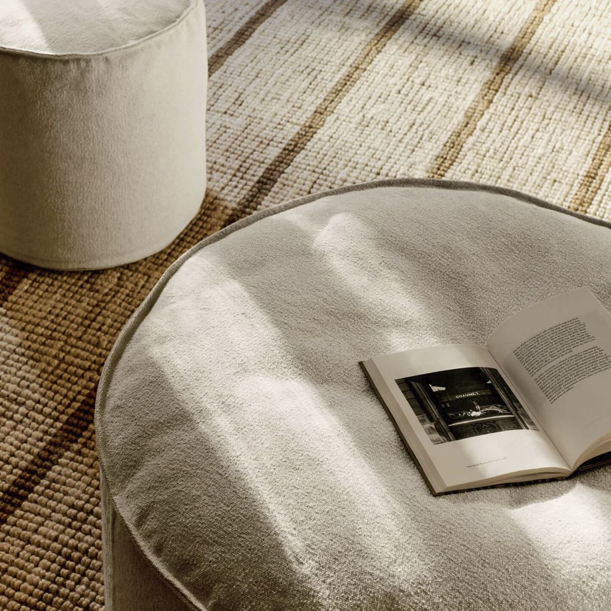 Aun é produzido em algodão orgânico não tingido, com textura firme, garantindo durabilidade. Os seus tons naturais e o design informal exalam elegância, enquanto a bainha dobrada acrescenta um toque de requinte. Oferece um conforto inigualável em qualquer ambiente.