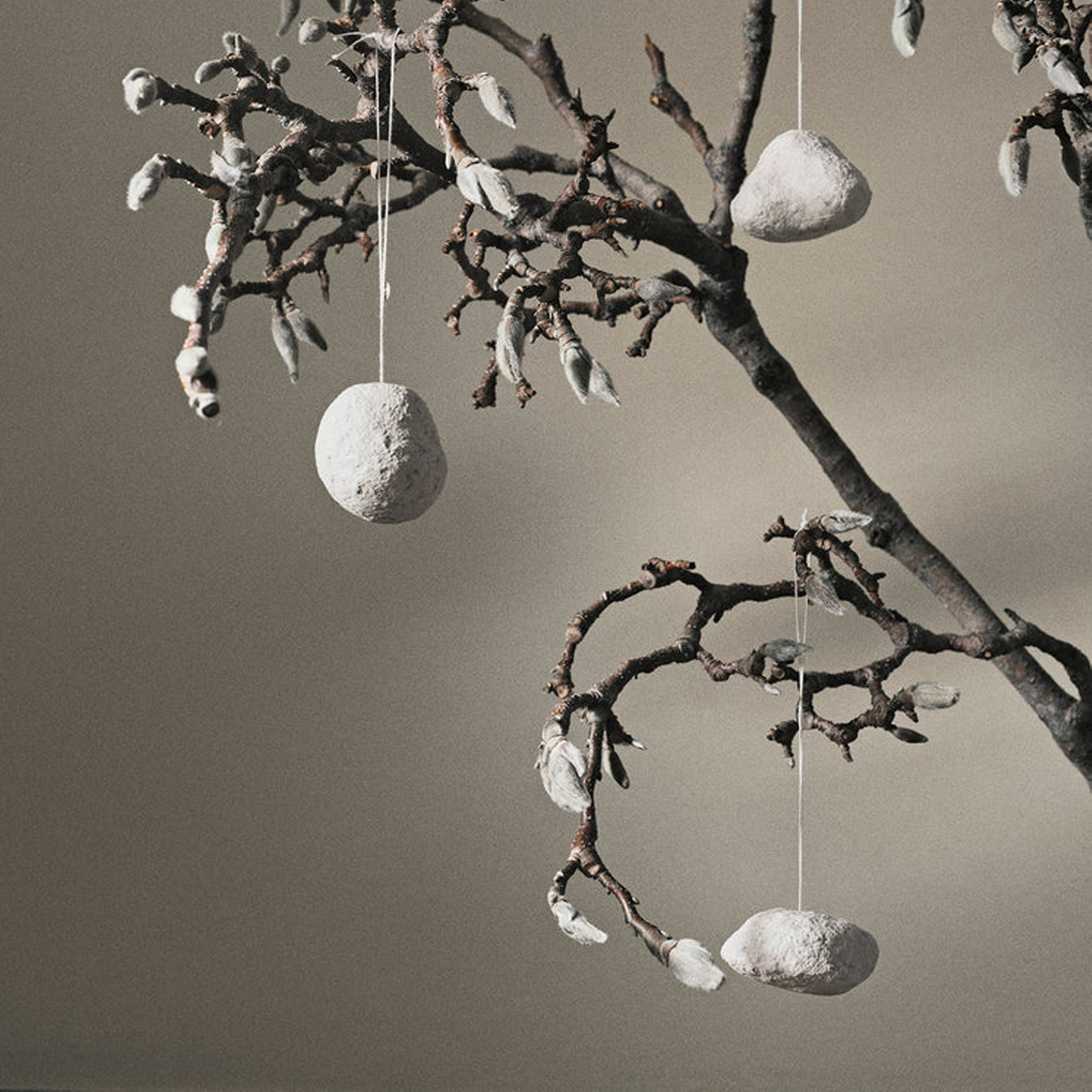 Dê as boas-vindas a um Natal branco em sua casa com estes ornamentos bola de neve. O conjunto de três é produzido em papel machê branco e pendurado num fio de algodão. Formatos únicos e orgânicos inspirados em bolas de neve. Pendure-os num galho sazonal ou use-os para enfeitar sua árvore de Natal.