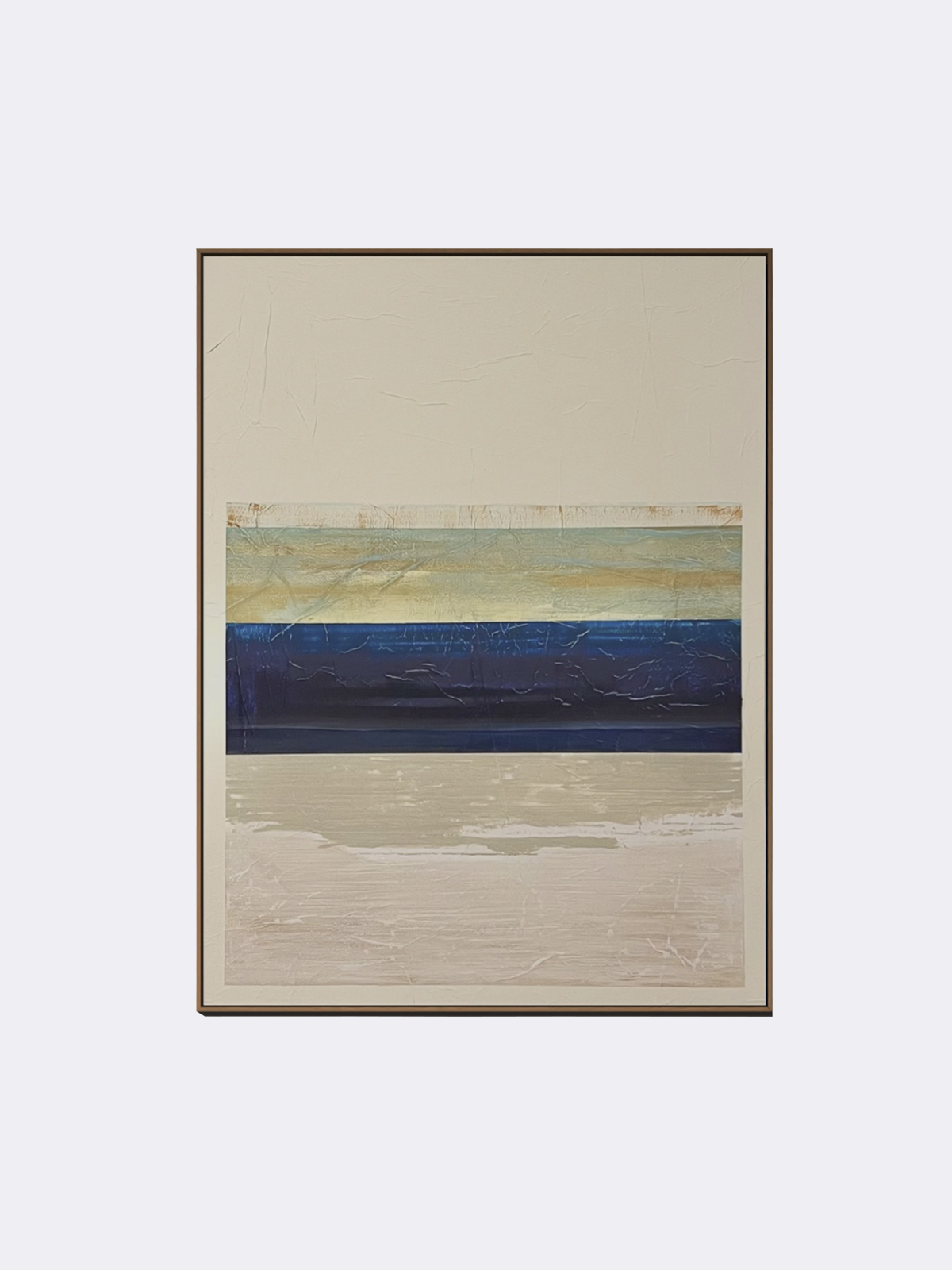 Expressiva, mas delicada, esta obra de arte confere um ritmo tranquilo à sua parede. Produzida com pinceladas curtas e sobrepostas em tons suaves e misturados, transmite uma sensação de espontaneidade e equilíbrio. Uma peça versátil que acrescenta calor e movimento ao seu espaço.