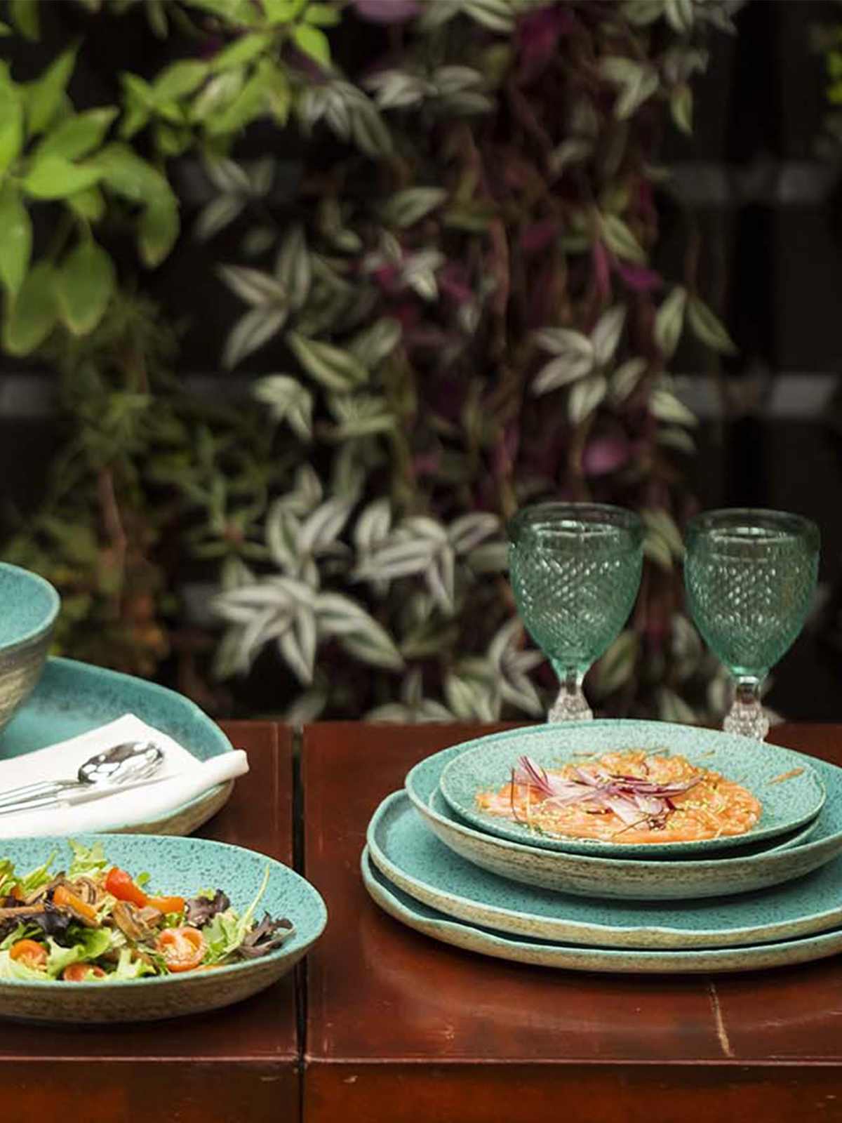 Cheia de texturas vincadas e cores fortes que fazem lembrar as técnicas ancestrais da arte ceramista. O aspecto cru que apresenta, quase inacabado, como se a matéria recusasse os ornamentos excessivos da mão humana e se bastasse a si para falar. Esta é a linha Sauvage, como costumam dizer amadores e profissionais da cozinha, "os olhos também comem". Com este serviço, não podiam estar mais certos.