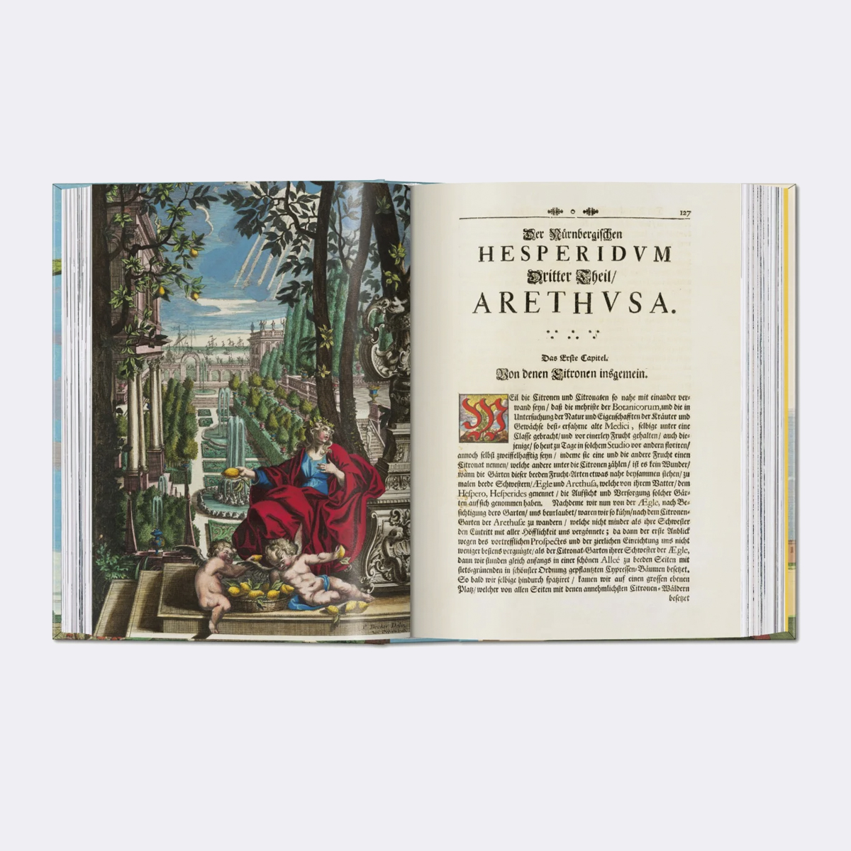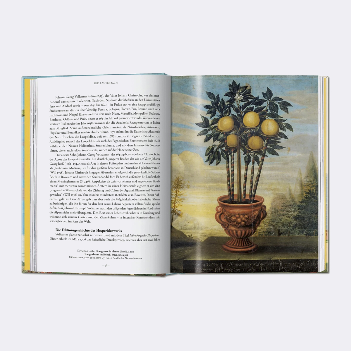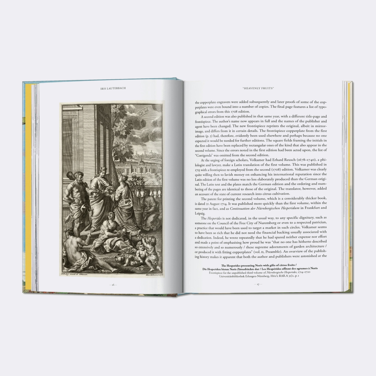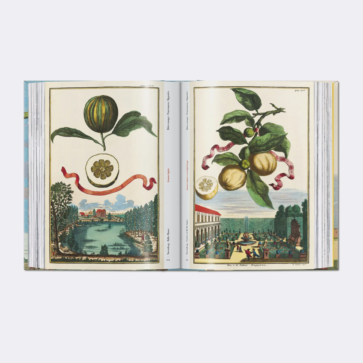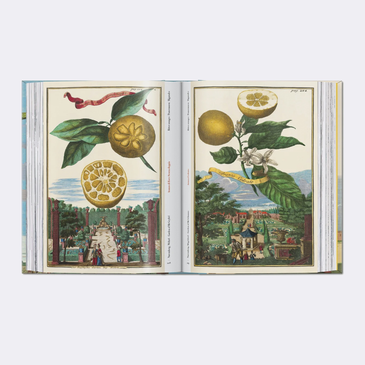 Citrinos, limões e laranjas amargas flutuam como corpos celestes sobre vilas italianas, jardins de Nuremberga e paisagens rurais pitorescas na ode de J. C. Volkamer aos citrinos. Reproduzindo um conjunto de gravuras em cobre pintadas à mão, esta publicação apresenta 170 variedades de citrinos, revivendo uma época em que estes frutos eram exóticos.